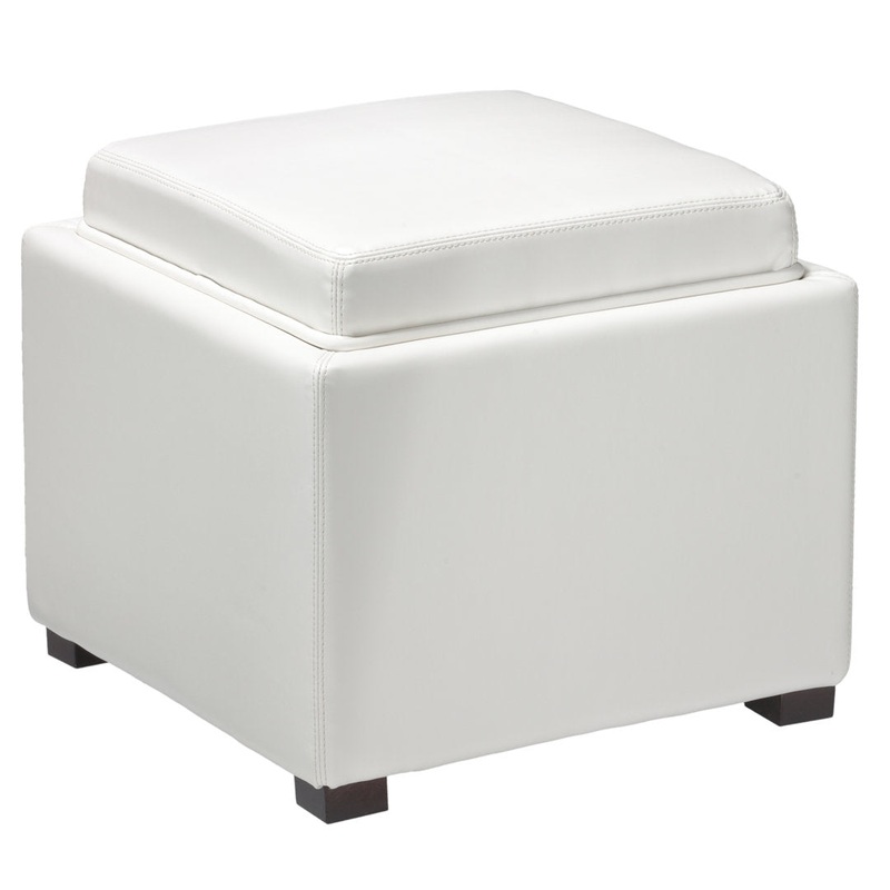With a spot to sit when you kick your shoes off and another to tuck those kicks away, this storage ottoman is essential for the entryway or master suite. Founded atop four block feet, its frame is constructed from solid wood and measures 16” H x 17.5” W x 17.5” D. Plush padding lends comfort to the top, which flips over to a tray on the other side, while faux leather upholstery in a solid hue wraps around to tie this piece together. Alcott Hill Upholstery: White Faux Leather
