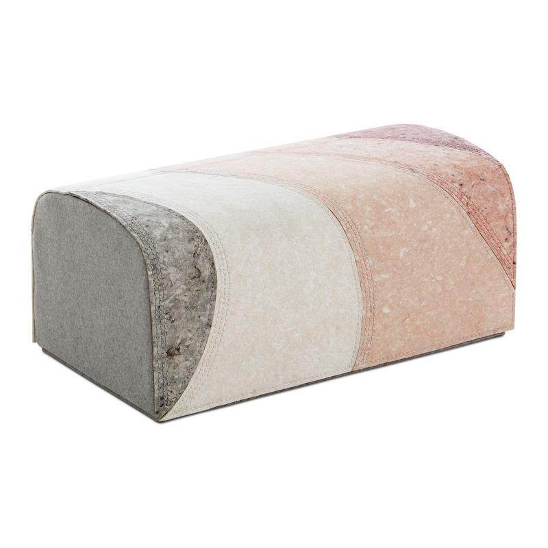 The Pouf from the Nuances collection, a large seat with which you can add surprising three-dimensionality to the rugs of this series: Line, Round and Curve. The different elements of this collection can be combined with each other to compose dynamic and sinuous landscapes that acquire volume thanks to the poufs, transmitting an apparent sense of continuity. Made with a special type of felt developed by the Patricia Urquiola and GAN, its surface simulates a stone texture reminiscent of granite.