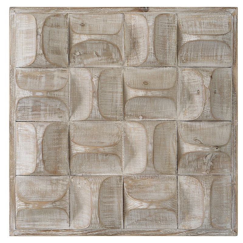 A Contemporary Take On Rustic Decor, This Wood Wall Panel Features 3-dimensional Scooped Fir Wood Blocks With A Distressed, Natural Wash And Ivory Highlights.