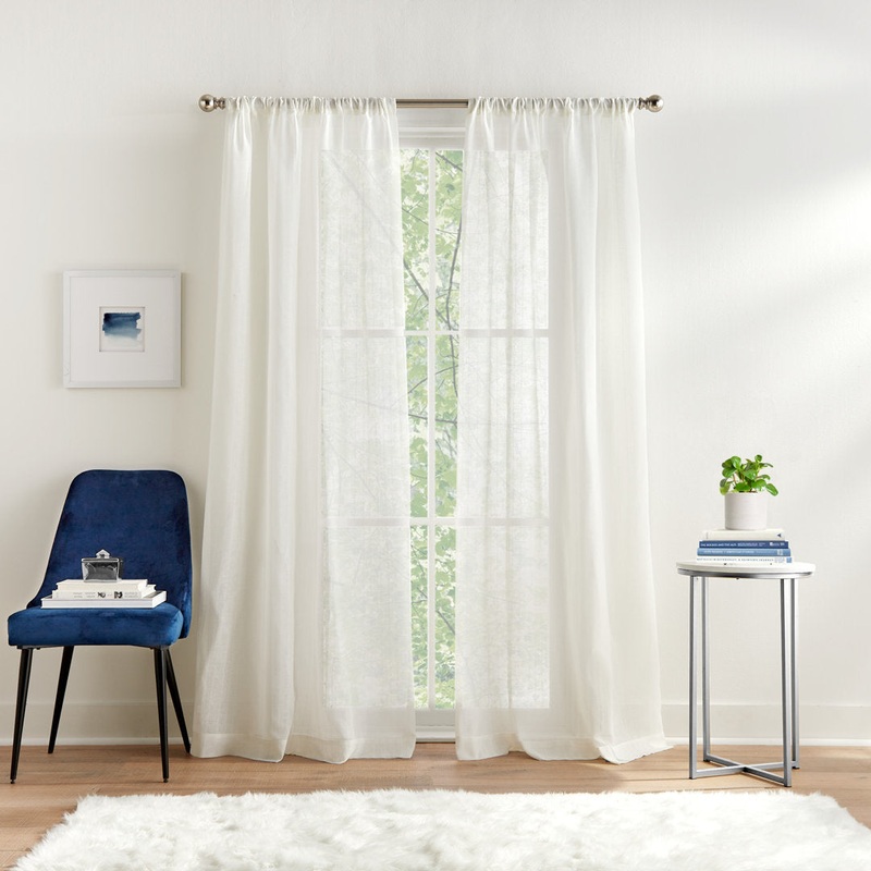 The Tommy Hilfiger Pinstripe Sheer curtain panel pair celebrates the essence of American cool style. This light and airy sheer panel set will lend a relaxed ambiance to your space. A subtle pinstripe pattern delivers a modern classic look instantly. Tommy Hilfiger Size per Panel: 50″ W x 84″ L, Curtain Color: White
