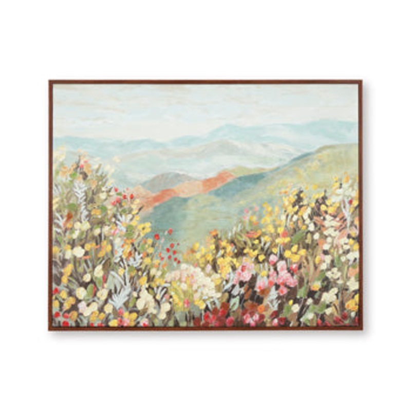 Frolic in a field of florals. This wall art showcases a landscape design bursting with color, bringing a lively feel to your decor. With rolling hills in the distance, it invites you in to explore its effortless beauty.