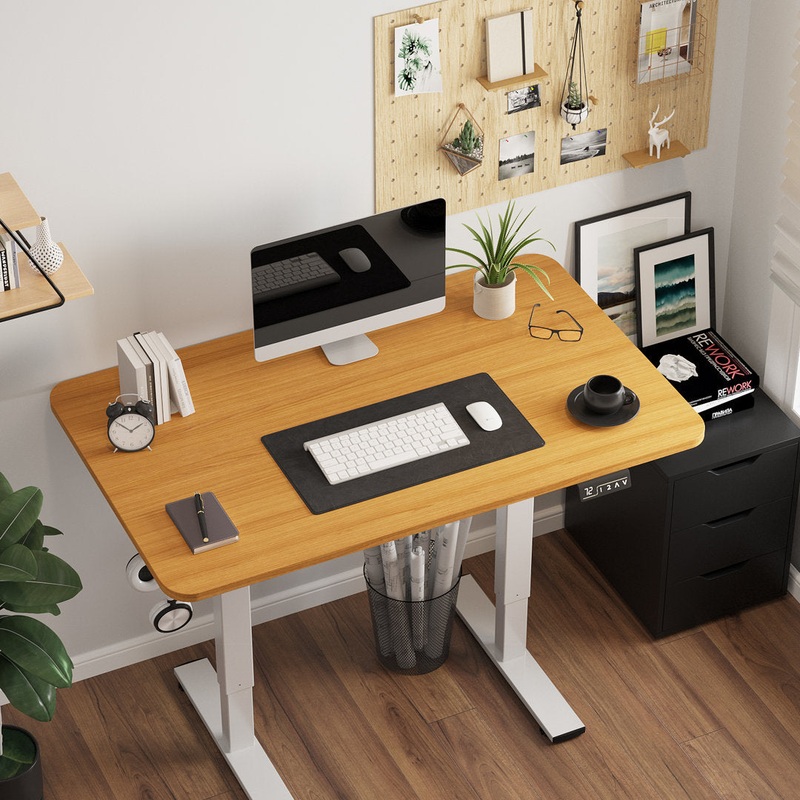 This standing desk lets you go from sitting to standing with ease. It features a height-adjustable design, allowing you to customize it to your changing needs and stretch your legs throughout the day. This desk is made from engineered wood with a neutral finish, and it rests on a stainless steel T-shaped base. It features a programmable memory controller, so you arrive at the perfect height every time. Understated and versatile, it blends in with nearly any home office decor. The Twillery Co. Color (Top/Frame): Bamboo/White, Size: 48″ H x 39.37″ W x 23.62″ D