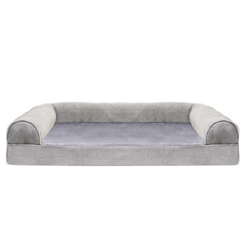 Finally, a solution for your pet’s arthritic pain! The sofa bed has a soft, quilted surface providing your pet comfort while the orthopedic foam base supports your dogs joints and pressure points. The sofa bed has three bolstered edges to give your pup a variety of comfortable positions. Your best friend deserves a good nights rest and now, its possible. With its very own orthopedic pet bed, your loved one will have maximum comfort for a great night’s rest. This luxurious orthopedic pet bed provides a cozy spot for your companion to snuggle up in, leaving you more room on the couch! No more sharing the bed or finding dog hair on the couch. With soft sidewalls and a snuggly quilted surface, your pet wont need to count sheep to drift into a deep slumber on this orthopedic dog couch. To suit your home decor, this comfy dog bed is available in a variety of stylish colors, and five sizes to ensure maximum comfort while napping for any size pet. Make your pets dreams a reality by gifting them with this cozy sofa bed! FurHaven Fill Material: Memory Foam, Color: Smoke Gray, Size: Large (36″ W x 27″ D x 6.5″ H)