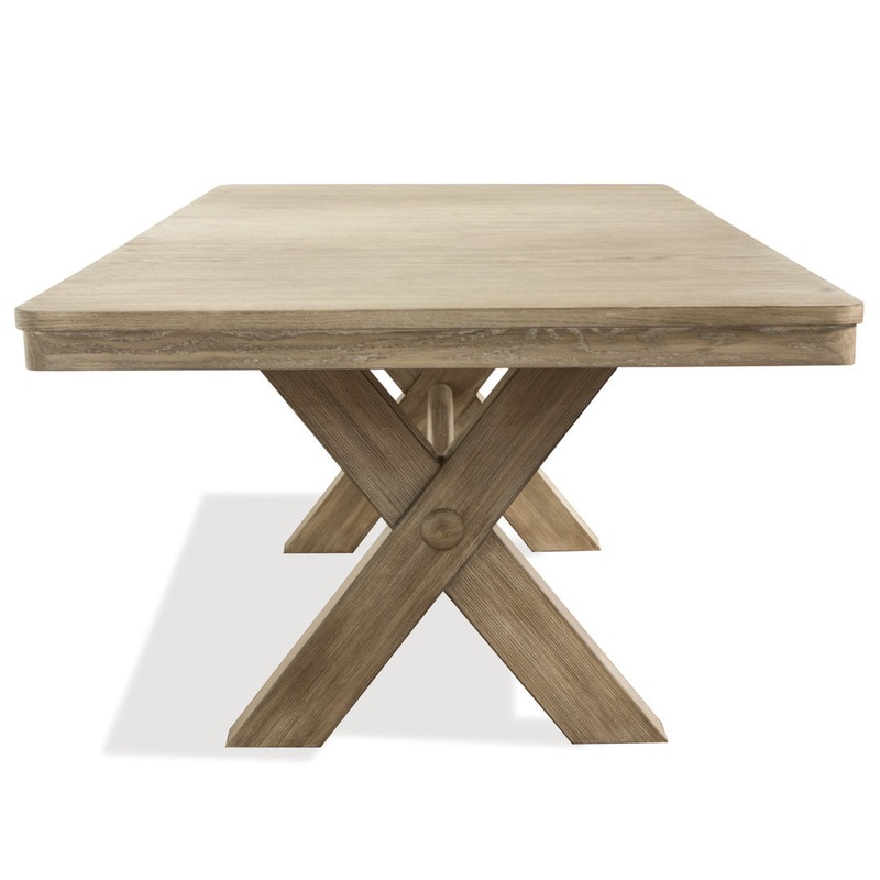 Gather round this stunning extendable dining table, perfect for family meals and large gatherings. The trestle base design adds a touch of rustic elegance to any dining space . Effortlessly extend the table with the removable leaf to accommodate extra guests. The chairs, featuring a comfortable solid back design, are upholstered in a light cream fabric, perfectly complementing the table’s natural wood finish. Birch Lane