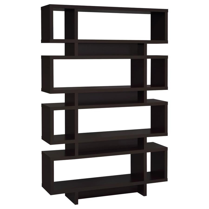 Indulge in a favorite. With dynamic mid-century styling, this bookcase offers function and fashion in a transitional setting. Retro flavor stacks open units atop one another, providing space for display of books, decor, and photographs. Seven tiers with large and small compartments break up a conventional arrangement. A luscious cappuccino finish offers a dramatic, versatile aesthetic.