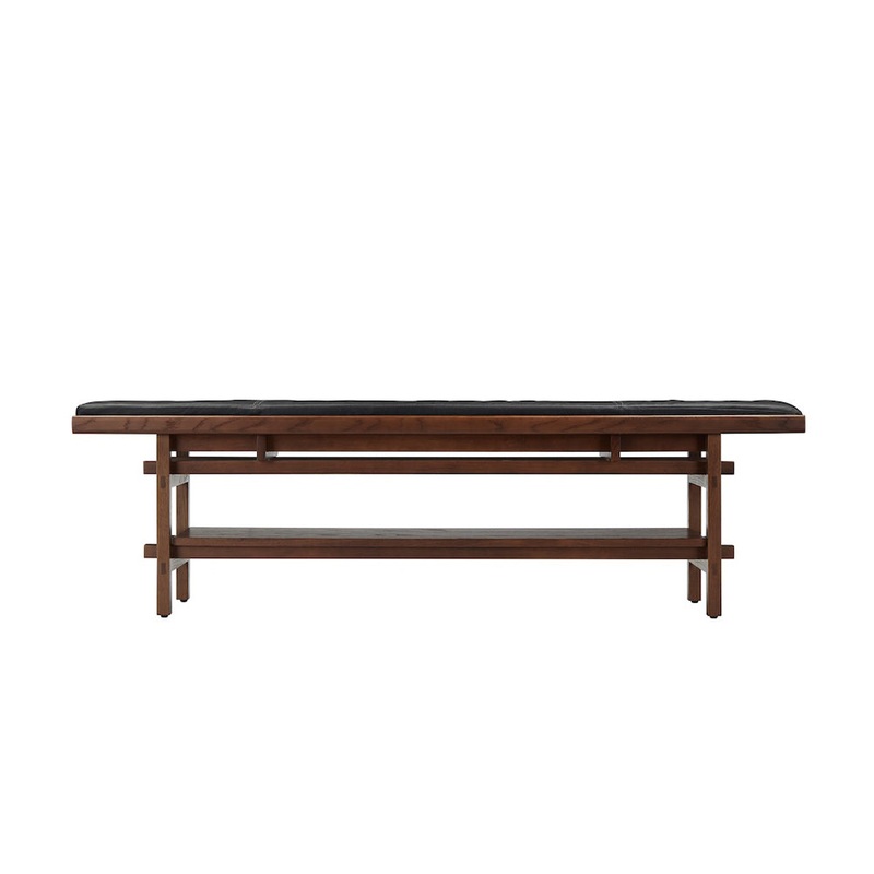 - Bench frame crafted in engineered wood with solid American white oak wood in dark stained finish