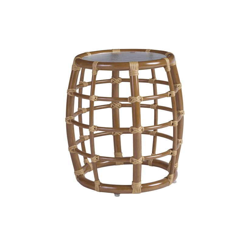 • The Attractive Circular Design Showcases The Artisan Skills Of Leather-wrapped Bamboo Yet With Outdoor Elements With A Wavy Glass Top.