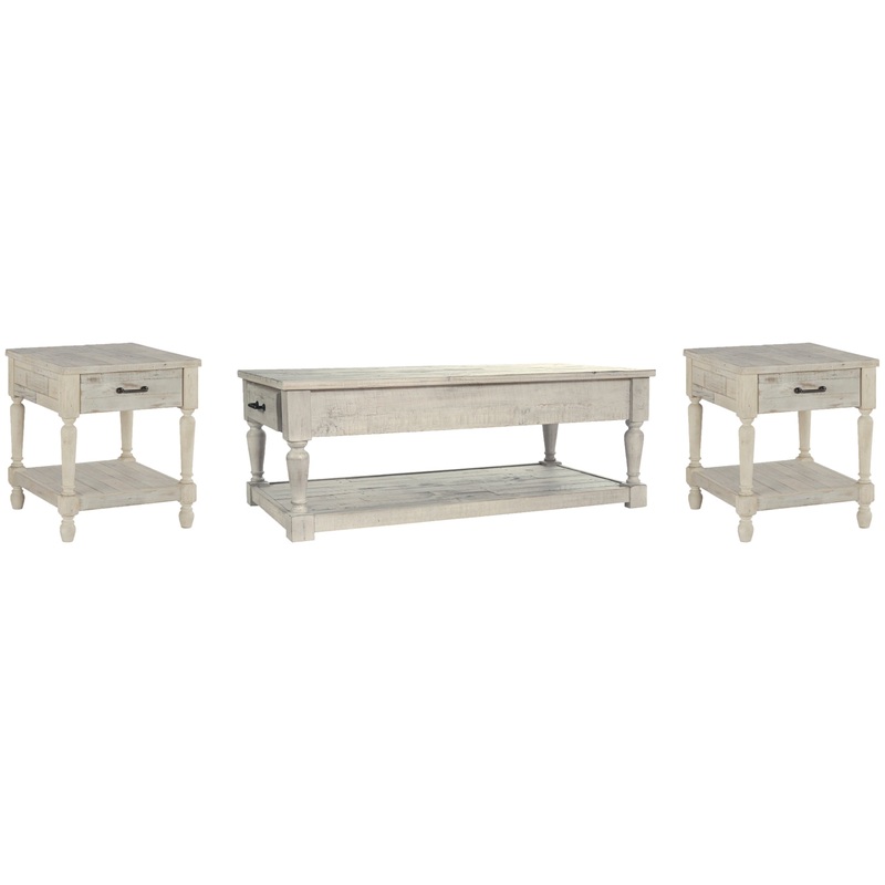 Inspired pieces create inspired spaces. This occasional table set charms with farmhouse style. White textural finish highlights the weatherworn feel of the wood tones and purposeful nail holes. Crafted with solid pine wood, this rustically refined ensemble is sure to satisfy for years to come.