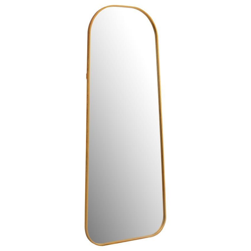 A fashion-forward look takes on simple style for perfect balance in a casual bedroom or dressing space. This floor mirror delivers a well-rounded design that dresses up or tones down a semi-formal or casual living area. A full-length design doubles the convenience of this elegant floor mirror, a suitable option for retaining the simplicity you crave yet spiced up with a sleek profile. A rounded edge silhouette and antique gold metal frame embellish stylish and sophisticated personality. Choose this mirror for its artistry and functionality.