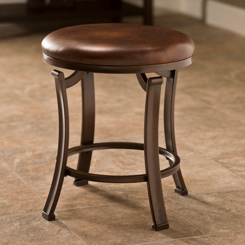 Morning prep doesn’t have to be mundane – make it marvelous by assembling an alluring vanity right in your bedroom! Set the foundation with an elegant end table if you’re building your beauty space in a sunny corner, or go for bold with a mirror-topped desk centered along a blank wall. As soon as you pull up this handsome stool you’ll be sitting pretty, but to get pretty yourself you can’t go wrong with a mirrored tray of your favorite cosmetics, a glittering jewelry tree, and a miniature chandelier hanging overhead to make the whole ensemble shine. Founded upon four curved legs, the metal base is finished in antique bronze and a circular brown-hued seat perfectly complements it. While you’re not gearing up for a day in the office or Sunday morning brunch with the girls, you can make this stool stand out by simply keeping a few folded tassel-trimmed throw blankets right on top. Charlton Home
