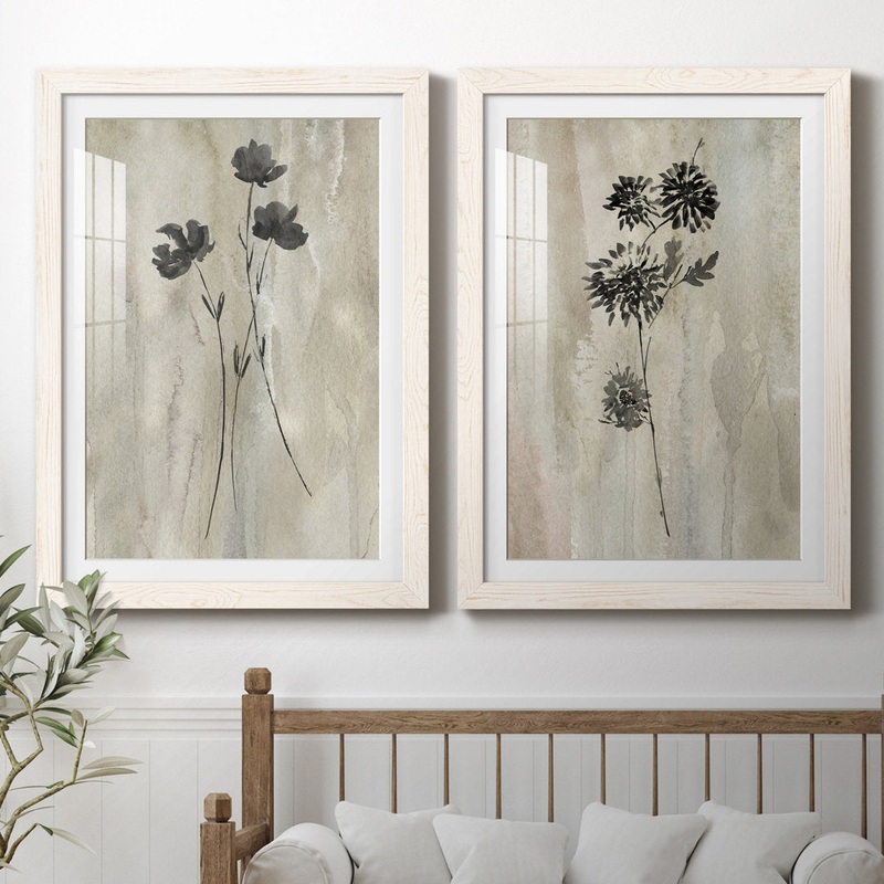 This 2-piece set of giclee prints adds a floral touch to your room’s wallscape with its depiction of a minimalist bouquet floating on both surfaces. Each painting print is awash in neutral gray and black tones that match almost any style or color scheme you want. Using fade-resistant archival inks, you’re able to place them on any wall, even in direct sunlight. There are also a variety of framing and size options available to best suit your space. Three Posts Size: 37.5″ H x 55″ W x 1.5″ D, Format: White Framed Paper, Mat Color: White