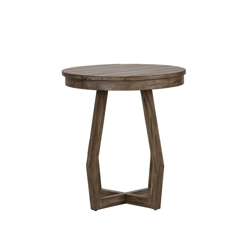 Bring sleek modern style to your living room with this distinctive end table. Built from reclaimed wood in a distressed gray finish, it features a planked top and an angular base with crossed legs. We love its 22 diameter round design, which makes the most of your square footage, whether youre using it as an end table or nightstand. This table is easy to clean; just wipe it down with a damp cloth. It completes the look in any modern, rustic, or bohemian setting. Sand & Stable