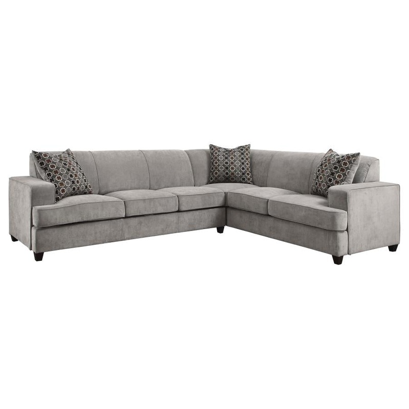 Contemporary function with transitional flavor describes this stellar sectional sleeper. A soft, lovely neutral grey microvelvet upholstery lifts the level of elegance in a living room or entertainment space. Configured for maximum access and comfort, it’s ideal for a more compact space, but also plays a perfect part in a spacious room. Enjoy superior comfort with pocket coil seating and the convenience of a pull-out queen size memory foam pad and air mattress with air pump. Wrap up its sleek silhouette with design bonuses including black finish legs and three patterned accent pillows.