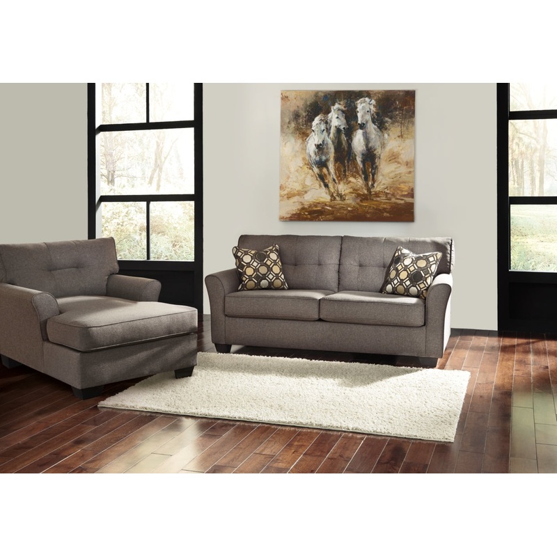 Inspired by high-end menswear, this living room set is tailored to perfection and dressed to impress. The sofa and chaise have button-less tufting on the back cushions, which is richly subtle. Sleek, flared armrests enhance this set’s clean-lined, simply striking profile. The ample scale of the chaise provides plenty of room for stretching out in comfort.