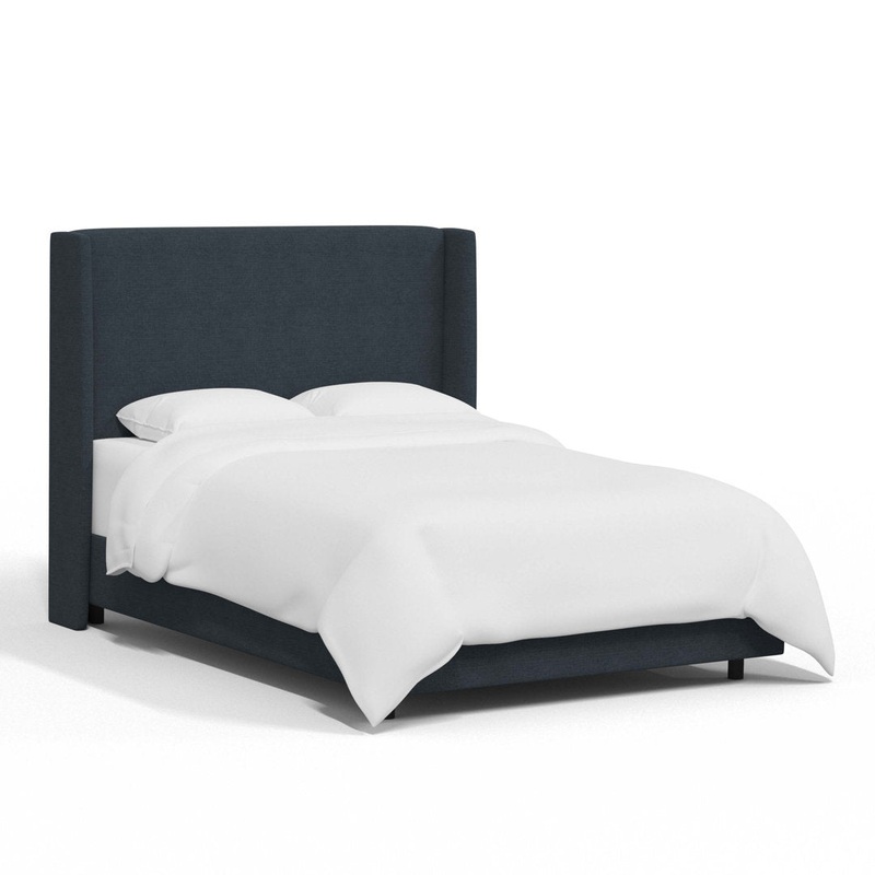 This standard bed sets the stage in your main or guest bedroom. Foam-filled upholstery wraps the solid and engineered frame in a look that’s equally cozy and refined, a great spot to prop up as you read before going to sleep. Plus, we love how the wingback headboard adds an angular accent. A wide range of hues and sizes are available to match your overall vibe and color scheme. Slats and center legs support your box spring and mattress (both sold separately). Joss & Main Size: Queen, Color: Classic Linen Navy