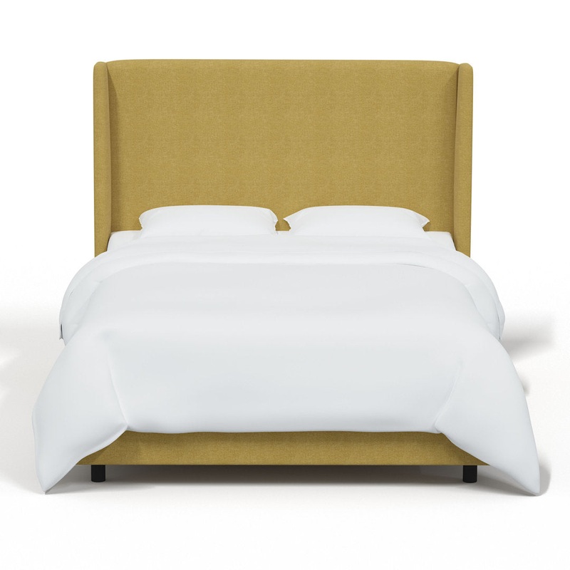 This standard bed sets the stage in your main or guest bedroom. Foam-filled upholstery wraps the solid and engineered frame in a look that’s equally cozy and refined, a great spot to prop up as you read before going to sleep. Plus, we love how the wingback headboard adds an angular accent. A wide range of hues and sizes are available to match your overall vibe and color scheme. Slats and center legs support your box spring and mattress (both sold separately). Joss & Main Color: Zuma Golden Textured Linen, Size: California King