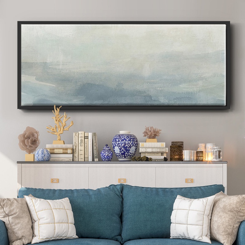 Tone Scape V. A framed hand-stretched canvas – ideal for over the sofa. Each piece is made to order and built to last. Each piece comes ready to hang. Solid wood stretcher. Fade and water resistant. They are made domestically. Wrought Studio Size: 12″ H x 30″ W x 1.5″ D, Frame Color: Black