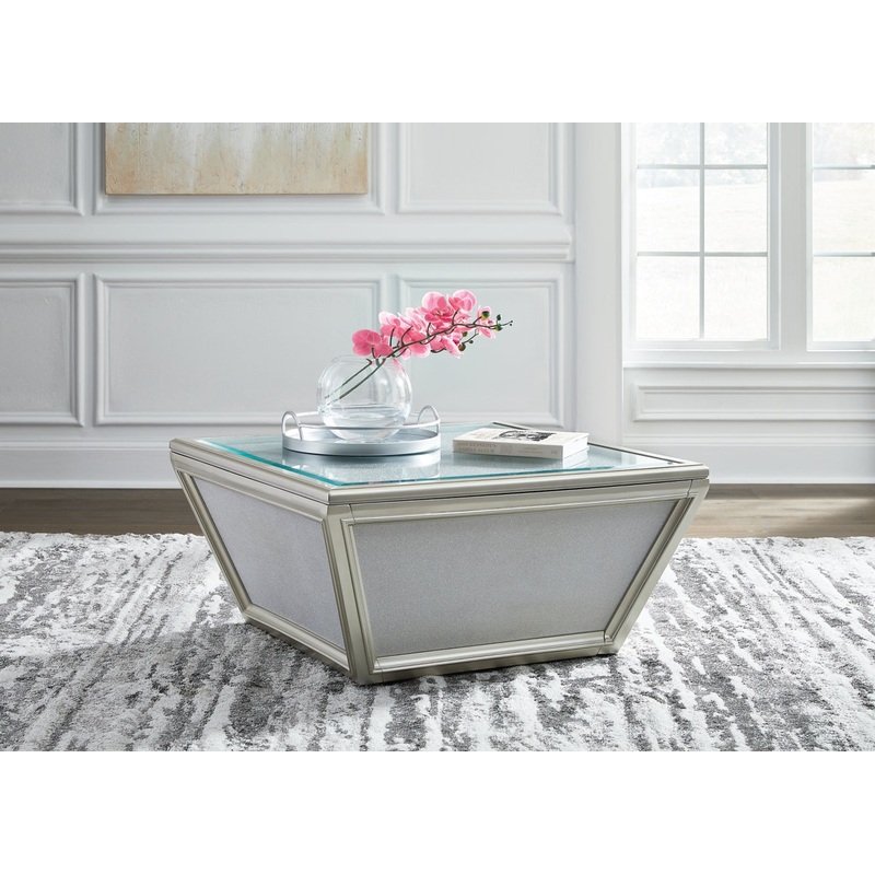 Reminiscent of Hollywood glamour of yesteryear, this coffee table interprets luxury in a decidedly modern way. Featuring a beveled inset mirrored tabletop, textured laminate panels for added luster and casters for easy mobility, it brings that touch of glam you’ve been yearning for.