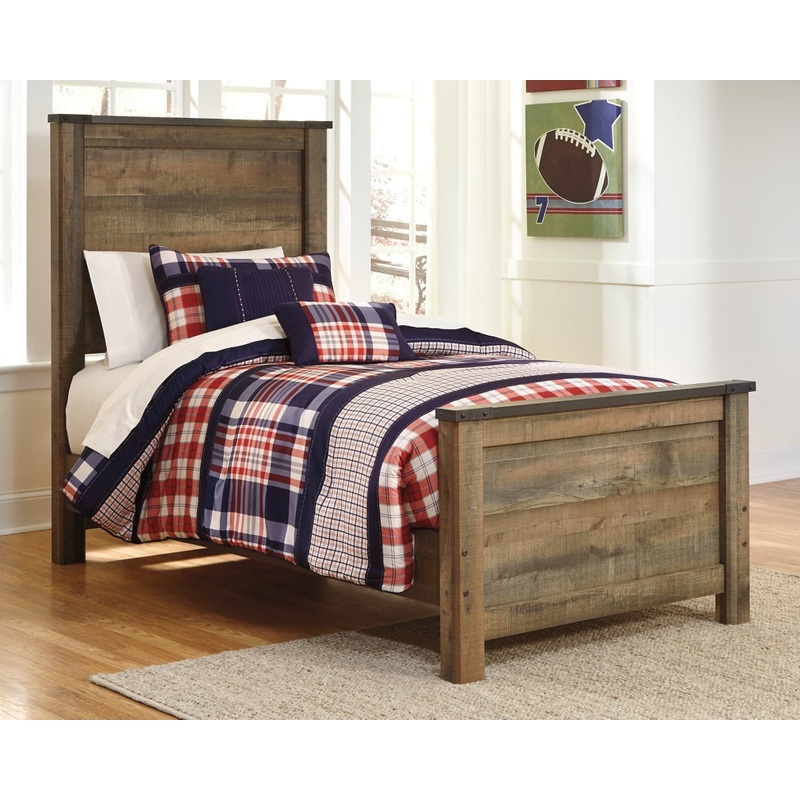 sku : B446B51InformationWhether she loves horses or he's a cowboy at heart, this twin panel bed and mattress set matches their authentic sense of style. Rustic finish, plank details and nailhead trim are an homage to reclaimed barn wood, making for a sophi