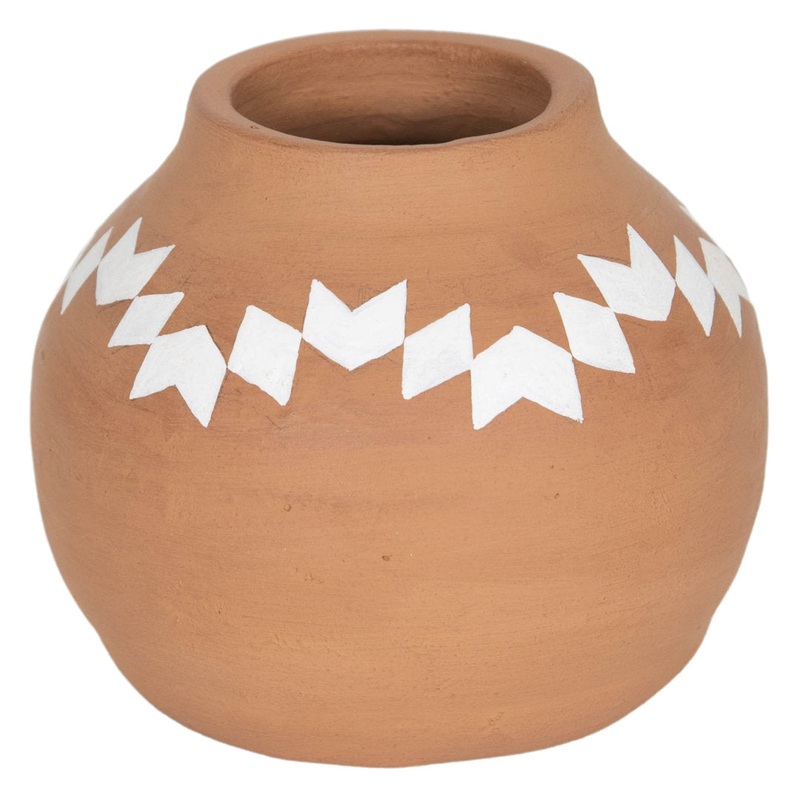 Spruce up your space with this Southwest-style terracotta bud vase. This charming, tapered vase is hand thrown and accented by a white geometric design that is hand painted. Its petite size offers a home for your stems to pop and is paired with a transitio