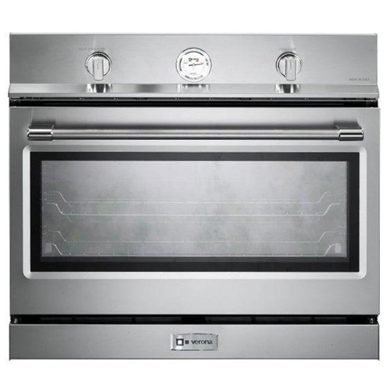 (P)Verona s Exclusive 30 Gas Built-in Oven has been re-designed and is now more powerful and stylish than ever before. Featuring Verona s exclusive GIANT oven cavity, this gas powered built-in oven is built for performance. A beveled soft-close door adds a sleek aesthetic, and included glide rack supports are an added luxury. The oven also features a temperature indicator and and stainless steel round handle for added style. (/P) (P)With a commercial-style closed door broil and convection bake options and the ability to stack multiple units, this high-performance gas wall oven can handle any culinary creation.(/P)