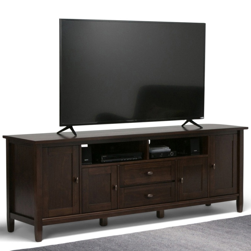 Warm Shaker SOLID WOOD 72 inch TV Media Stand For TVs up to 80 inches Simpli Home Color: Tobacco Brown