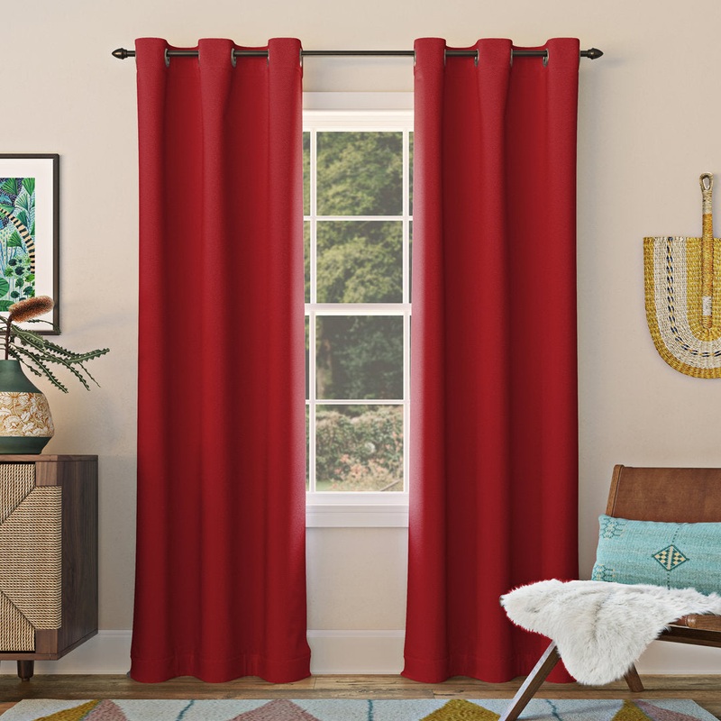 Instantly elevate any window in your living room or bedroom with this simply stylish grommet curtain panel. Easy to install, a convenient grommet header effortlessly slides over your preferred curtain rod (not included), while a straight bottom hem offers a tailored finish. Crafted from 100% polyester, this curtain keeps the light out with its room-darkening design, while its handy noise-reducing feature lets you sleep in on Sundays. When its time for a refresh, this curtain can be machine-washed for fuss-free upkeep. Wayfair Basics Size per Panel: 40″ W x 63″ L, Curtain Color: Red