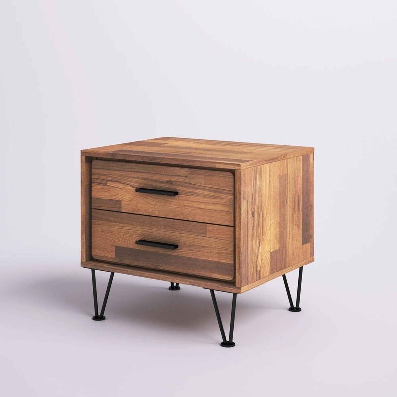 Defined by its low profile and minimalist design, this clean-lined nightstand brings a bit of flair to your bedroom. Founded atop four metal hairpin legs, this budget-friendly piece is made of manufactured wood and particleboard in a neutral finish thats versatile enough to complement most color palettes. provide a place for books, vitamins, and other b