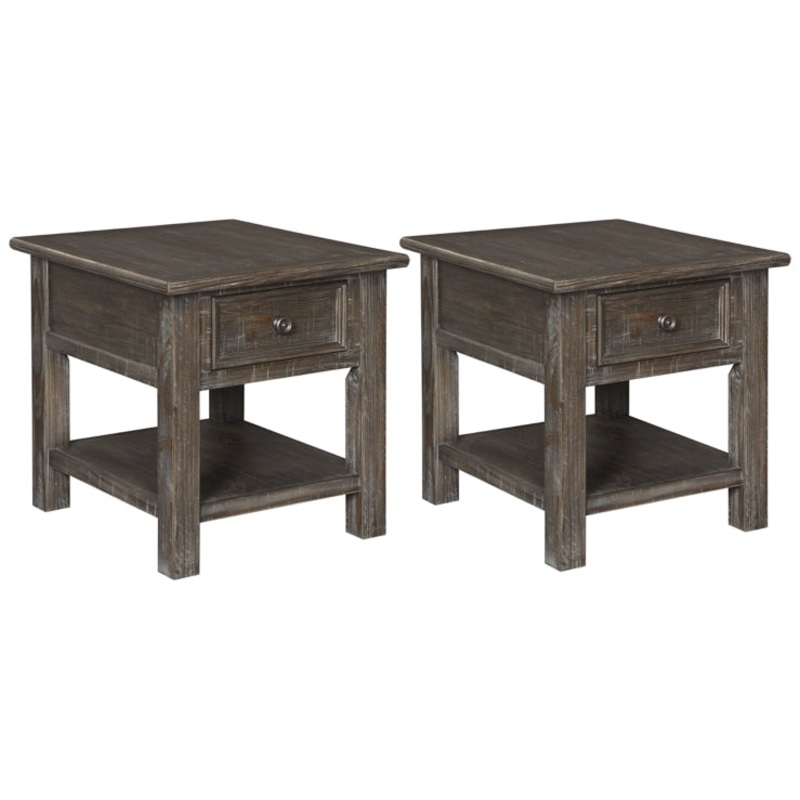 Inspired by heavy and hearty lodge-style furnishings from days gone by, this end table set brings the past brilliantly into the present. Distinctive details include a stocky, linear profile, plank-effect display shelf and a distressed aged pine color finish with light wire-brushed texture thats pure artistry.