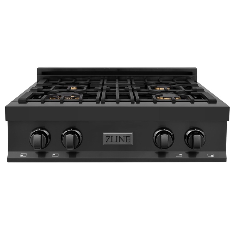 ZLINE 30 in. Porcelain Rangetop in Black Stainless with 4 Gas Burners (RTB-BR-30) with Brass Burners